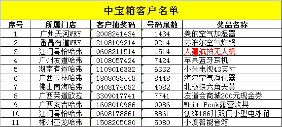 中獎(jiǎng)客戶名單
