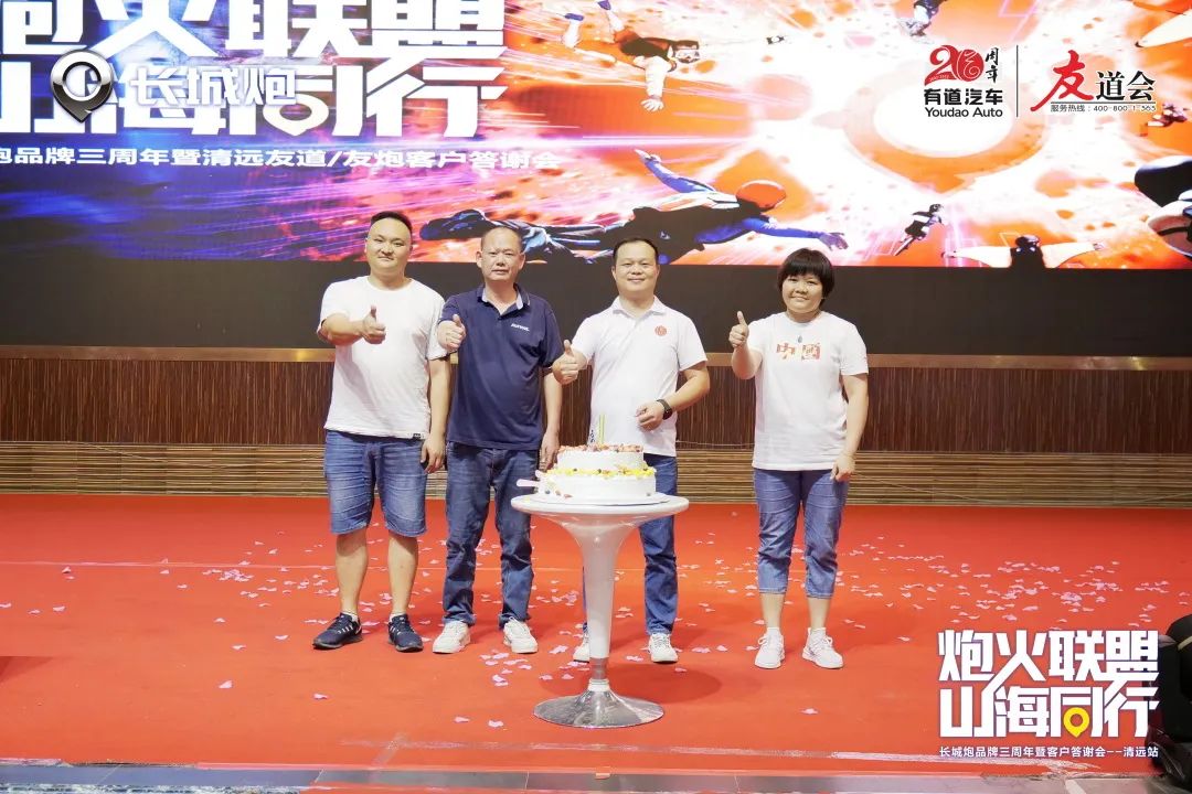 并在現(xiàn)場邀請嘉賓上臺切慶祝蛋糕,慶祝長城炮品牌成立三周年。