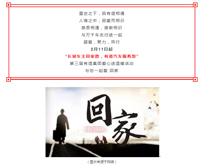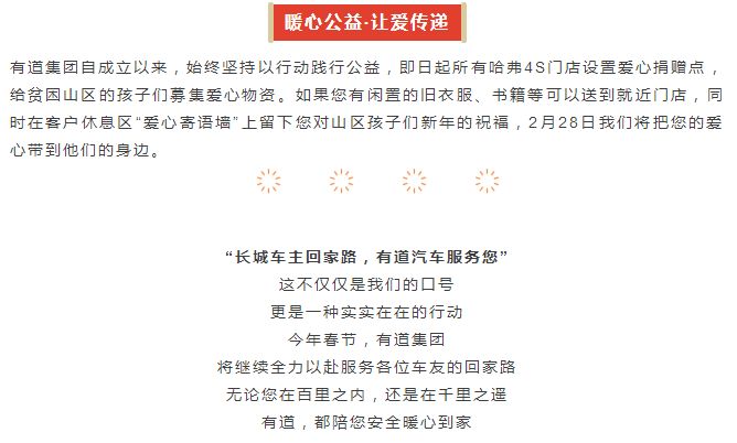 第三屆愛心送溫暖活動明日啟幕丨長城車主回家路,有道汽車服務您