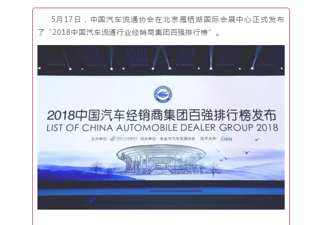 廣東有道汽車集團(tuán)股份有限公司榮登2018中國(guó)汽車經(jīng)銷商集團(tuán)百?gòu)?qiáng)排行榜